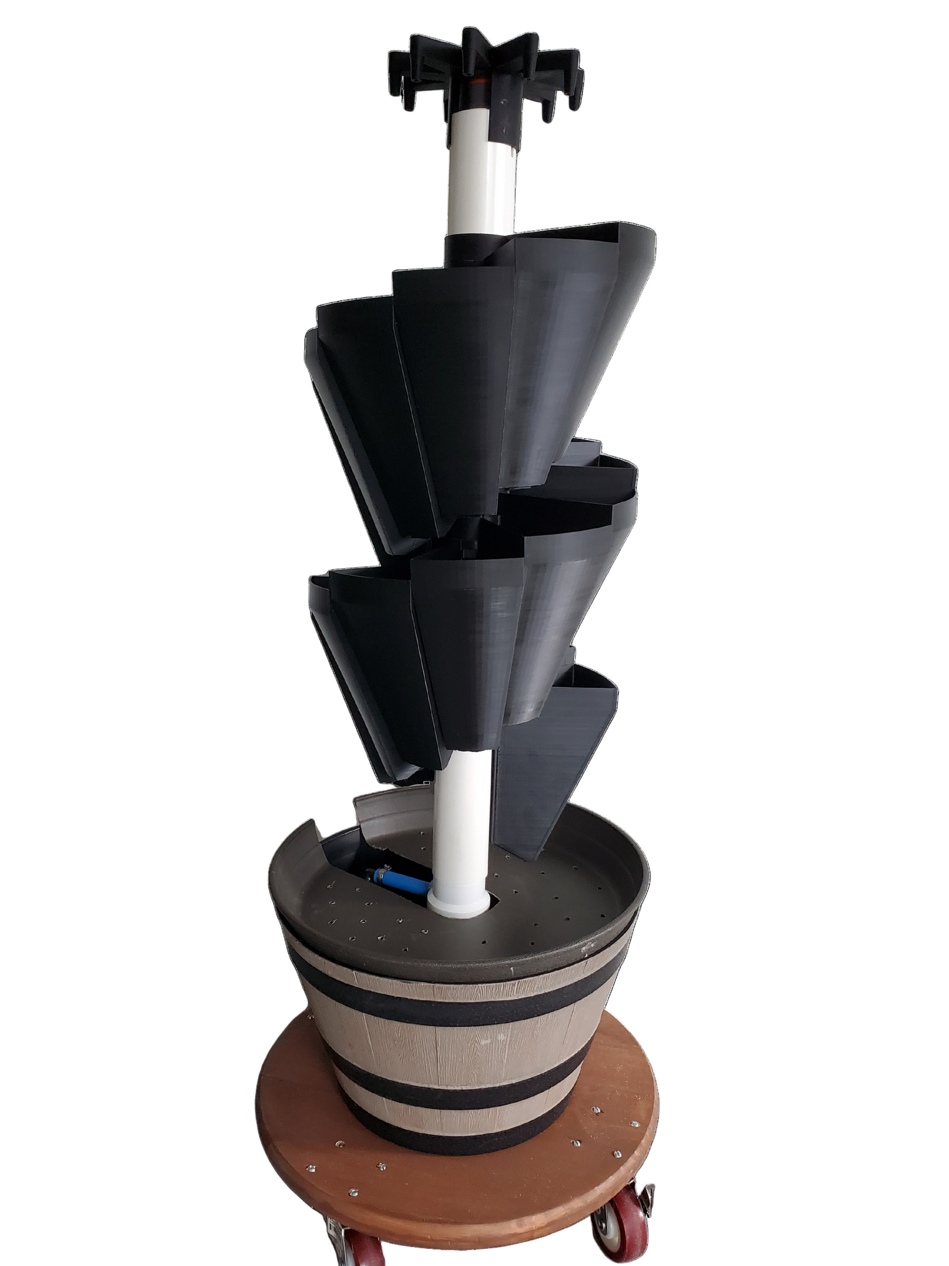 Our 3+ ft. tall, 26" diameter system offers the ability to grow 20 plants of fresh produce and herbs in homes with tiny yards or apartments with a limited amount of indoor space. David includes 20 x 8" plant buckets with quick connect collars, distribution cap with rain chains, mobile reservoir assembly, light assembly, and all the accessories needed to build your system. Choose David's growing location, add your growing media, plants, and water with nutrients and start growing your garden. Take the time to relax, sip on some coffee, and enjoy David - the beautiful living art with a real purpose!